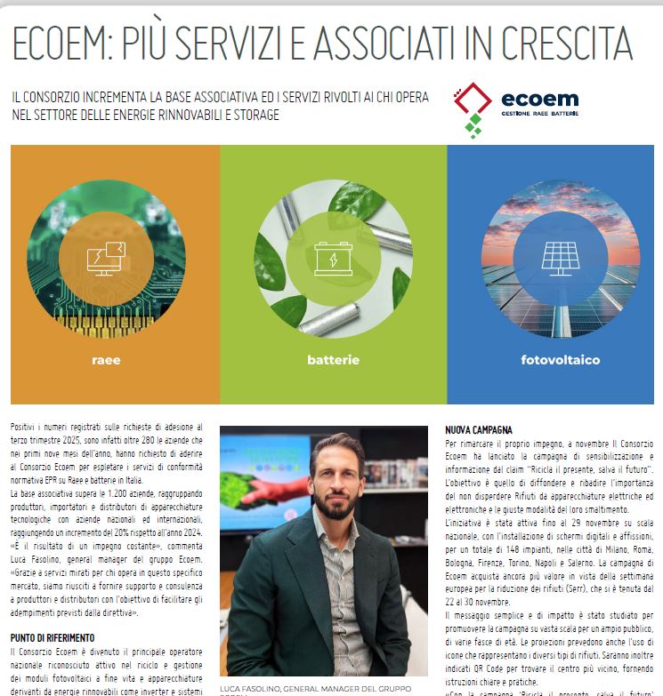 Sarà l’ultima occasione del 2025 per i Soggetti Responsabili per evitare la trattenuta pari ad € 20,00/pannello ed attivare la garanzia finanziaria che servirà ad assicurare le attività di ritiro, trasporto, trattamento e riciclo dei pannelli installati. ECOEM, principale Sistema Collettivo Nazionale accreditato dal GSE nella gestione dei pannelli esausti ha riattivato il servizio dedicato ai Soggetti Responsabili interessati, per supportarli ed assisterli nella trasmissione della pratica entro i termini e ricevere il rimborso delle trattenute già avviate.